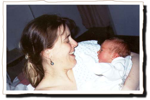 Cathy teaches Phoebe to smile. Phoebe is taking